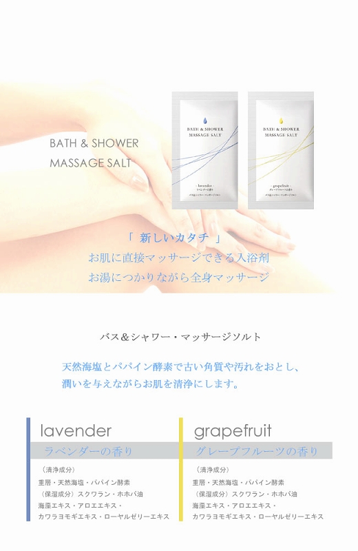 HOME > ソープグッズ・入浴剤 > 入浴剤(ローション・ゼリー・泡) > バス&シャワー・マッサージソルト (グレープフルーツの香り)