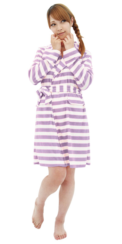 癒し効果抜群!パープルカラーのキュートなボーダー柄のガウン。