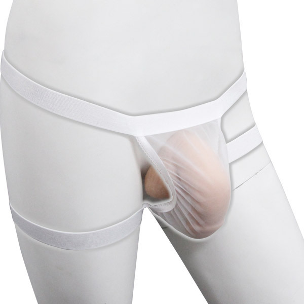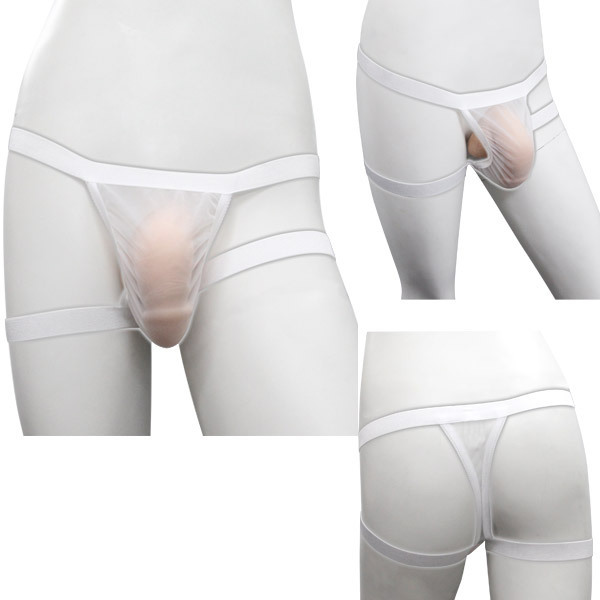 透け感のある白メッシュを採用して蒸れ知らず!大胆にサイドをカットし、Tバックショーツのように魅せる、スタイリッシュなメンズ用ランジェリーです。