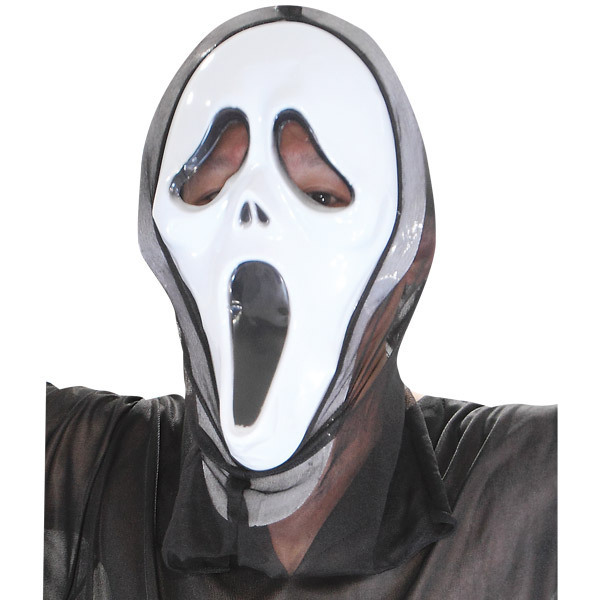黒いフードに白い顔…!戦慄のデスボイスが聞こえそうなスクリーム風フェイスマスク単品。 ●装着するだけでコスプレ完了・フリーサイズのお面●大口を開けて歪んだ顔が意外と面白い●性別や年齢関係なし・手持ちの黒い衣装に似合います。 ハロウィンイベントのホラー仮装に!カッコよく斜めに被ったり、仲間と揃えたりしても楽しめるコスプレ小物です。
