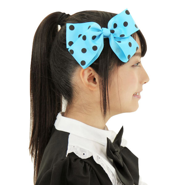 鮮やかなブルーリボンに黒いドットをプリントしたコスプレ向けヘアアクセサリー単品。 ●大きめリボン&サイコロっぽい黒ドット●装着簡単・バネ付きヘアピンタイプ●サイドからスッと差し込んで挟むだけ。 襟元やスカートの裾など、ヘアスタイルに関係なくどこへでも使えます。 アイデア次第、あったらいいな!と思った場所に飾ってみてください。