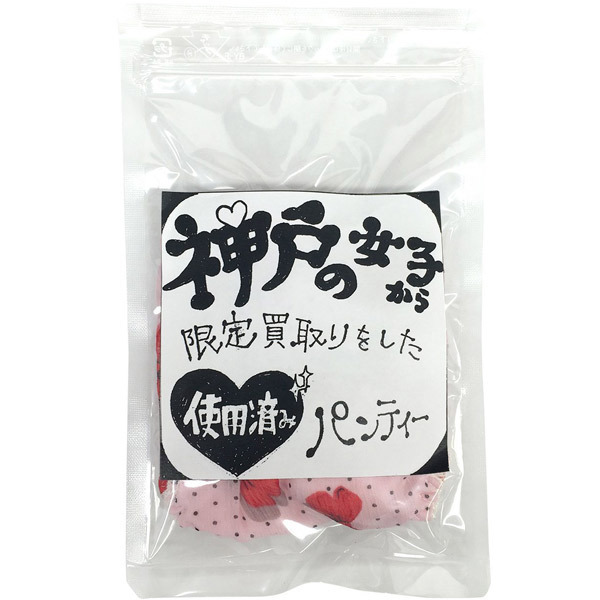 脱ぎたてホヤホヤ!?兵庫・神戸の一般女性から買い取ったお宝パンティー。 ●限定買い取りシリーズ●パンティ1枚をパウチに密封●中身の色・柄・形状はランダム●厳選買取りの本物志向。 神戸っ娘のアソコに一日中密着していたであろうお宝パンティー!嗅ぐ、こする、履く…と、高い汎用性を誇るフェティッシュなアイテムです。