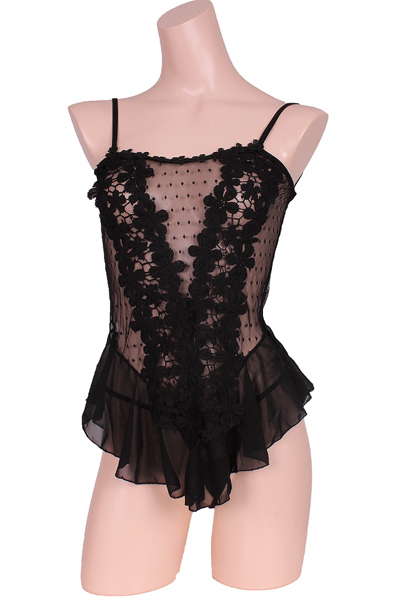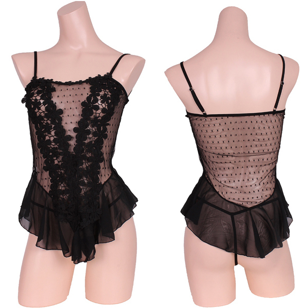 HOME > 下着 > ベビードール・スリップ > フリルとレースで可愛さ増しベビードール&Tバックセット ブラック