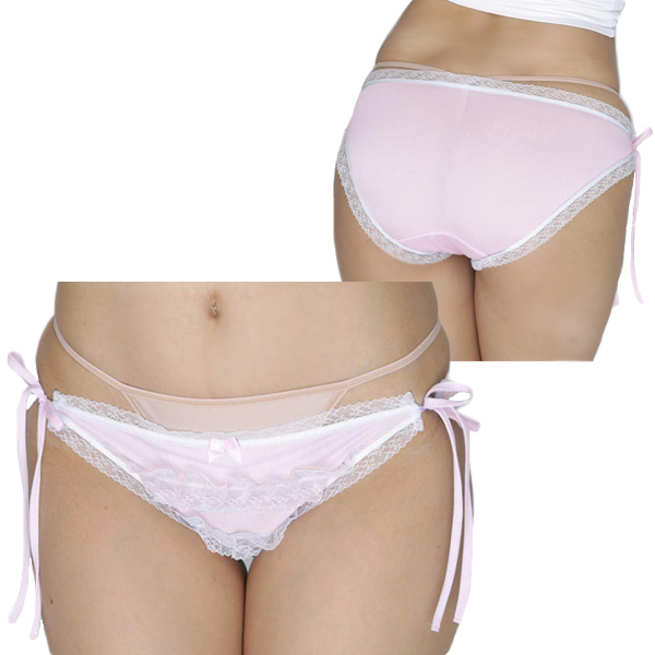 HOME > 下着 > ショーツ・パンティ > 2段のフリルレースが可愛い光沢フルバック ピンク