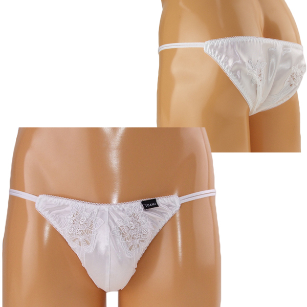 HOME > 下着 > 男性用ショーツ・ビキニ > メンズ 光沢ストレッチ生地レース装飾フルバック ホワイト