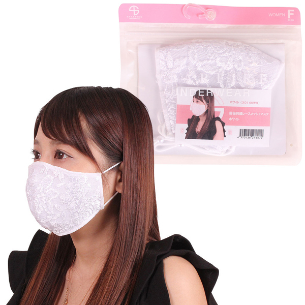 HOME > 衣装・コスチューム > 小物(猫耳カチューシャ・ニーソ) > 薔薇刺繍レースメッシュマスク ホワイト