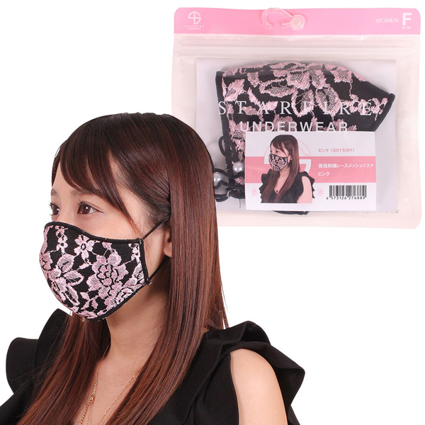 HOME > 衣装・コスチューム > 小物(猫耳カチューシャ・ニーソ) > 薔薇刺繍レースメッシュマスク ピンク