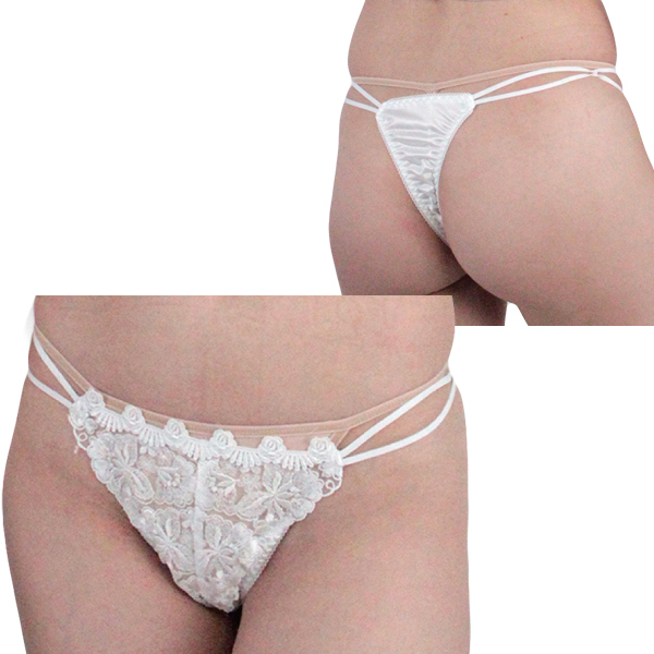 HOME > 下着 > ショーツ・パンティ > 肌触りのいい光沢レース付き脇2本ゴムTバック ホワイト
