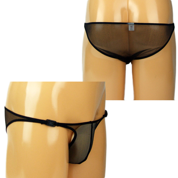 HOME > 下着 > 男性用ショーツ・ビキニ > メンズ キラキラシースルーワンタッチバックル付きハーフバック ブラック