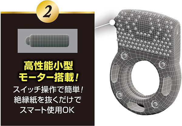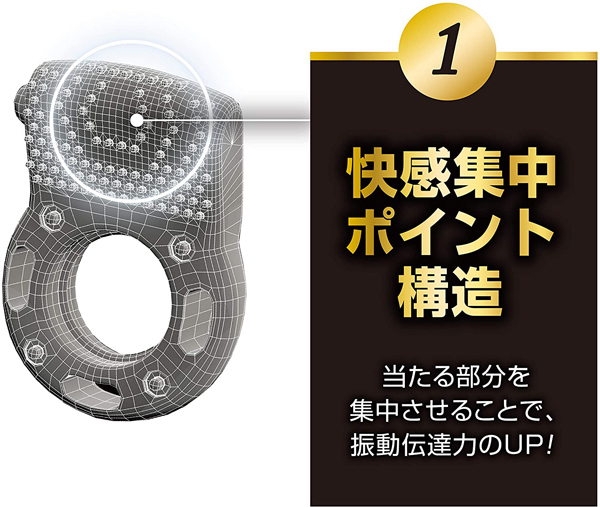 新感覚のペニス用振動リングが登場しました!バイブレーションリングとも呼ばれ、強力振動と特殊ハニカム構造が相乗効果を発揮します♪振動部がしっかり当たる前屈構造で、押し当てることで幅広突起部の多数の面が刺激します。 1回使い捨てタイプで電池内蔵、連続振動時間は約20分♪コンドームの上に着用することで脱落防止にも効果的です。 快感集中ポイント構造による高い振動伝達力が特長で、柔らかく伸縮性の高いエラストマー製でフィット感抜群です♪使用は簡単で、絶縁紙を抜きスイッチを入れるだけで直ぐに使えます!振動を集中させることでより快感を味わえるバイブレーションリングをぜひお試しください。