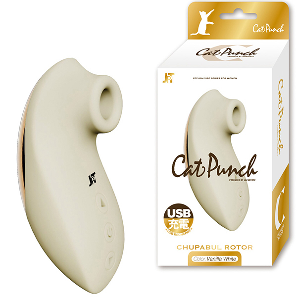 抜群の機能性とロープライスが自慢の新ブランドキャットパンチから、ハンディサイズで持ちやすいクリ吸引に特化したクリバキューマーが登場♪超静音設計のチュパチュパ吸い付くような感覚が楽しめる、チュパブル振動ローターです。 9種類のプレイパターンが楽しめて、付属の充電ケーブルで充電することによりコードレスでのプレイが可能♪大きさ的にもハンディサイズで持ちやすく、「吸われる」ことに特化しているのでバイブやローターの振動系とは違った気持ちよさが味わえます。 プレイボディには体に優しいHGシリコン素材を採用!生活防水対応なので清潔に保ちながら心地よくお使い頂けます。 色はピュアでスイートなバニラホワイトとなっております♪