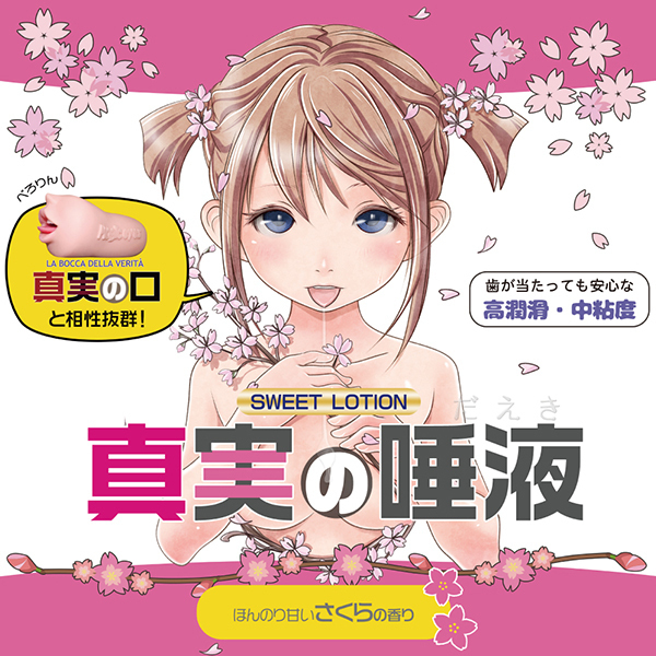 ほどよくとろける感じでフェラホールとの相性がバツグンのローション「真実の唾液さくら」。 真実の口シリーズのために開発されたフェラホ用のローションで高潤滑な中粘度タイプとなっています♪バランスの良いテクスチャのため、手コキとかにも良さ気です。 ほんのり甘いサクラの香りがついているので甘いときめきを嗅覚でも感じられます♪かわいいスリーブケースを剥がせば無地のボトルになるのでパッケージが気になる人にも安心です。