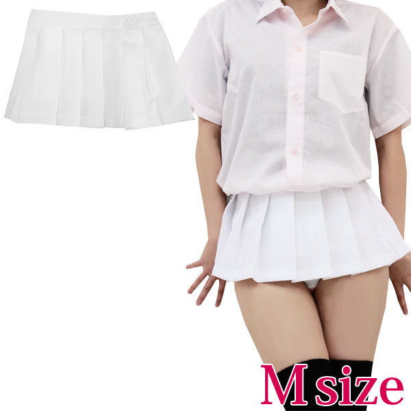 本格的な女子高生コスプレ!超ミニ丈の無地プリーツスカート(白)。