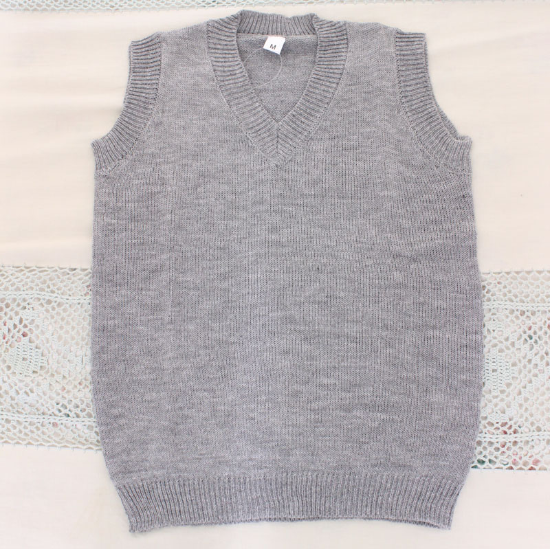 制服コスプレと相性抜群!オールシーズンOKなグレーの無地ニットベスト単品(M)。 マルチに活躍する定番のVネックベストは、ブレザーの下に着ても、そのまま白シャツに合わせても可愛い!1枚あると便利なコスプレ小物です。