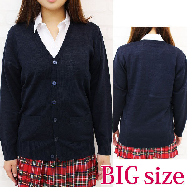 ネイビーカラーの「ニットカーディガン」は学生服や私服、コスプレにも合わせやすい!「学生気分をもう一度味わいたい…」そう思っている方は、制服コスプレと一緒に着てみてはいかがでしょうか?こちらは大きめのBIGサイズでございます。