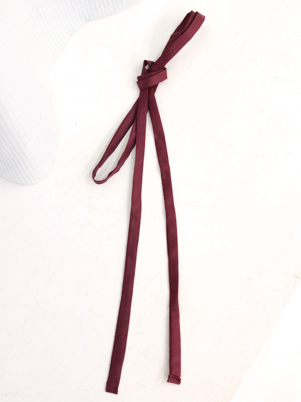 定番の制服リボンに飽きたら、次はコレ!「スクール紐タイ単品 エンジ」。 ひも状の細長いリボンを襟元で結べば、お嬢様学校風のスタイルに早変わり!女の子らしさが際立つエンジ色で、キュートなスクールガールになれちゃう紐タイです。