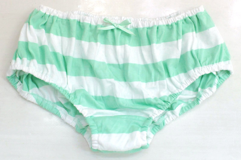 お尻スッポリ、ゆったりした履き心地!白と緑のボーダーがラブリーなしましまショーツ。