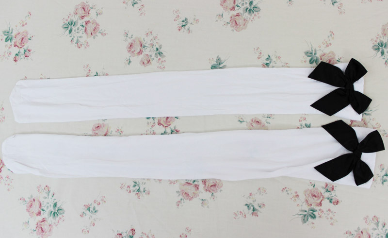 リボン付きニーハイ 白×黒リボン