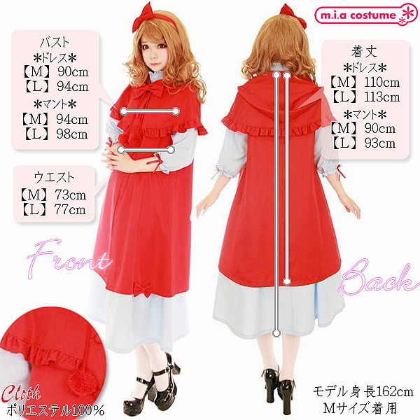 HOME > 衣装・コスチューム > ハロウィン・仮装 > 赤ずきんロリータドレス Mサイズ