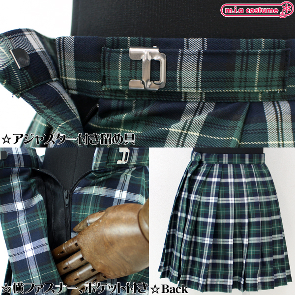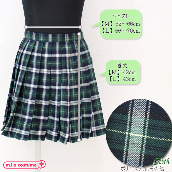 HOME > 衣装・コスチューム > 小物(猫耳カチューシャ・ニーソ) > ポケット付きのチェック柄プリーツスカート単品 緑×白 Lサイズ