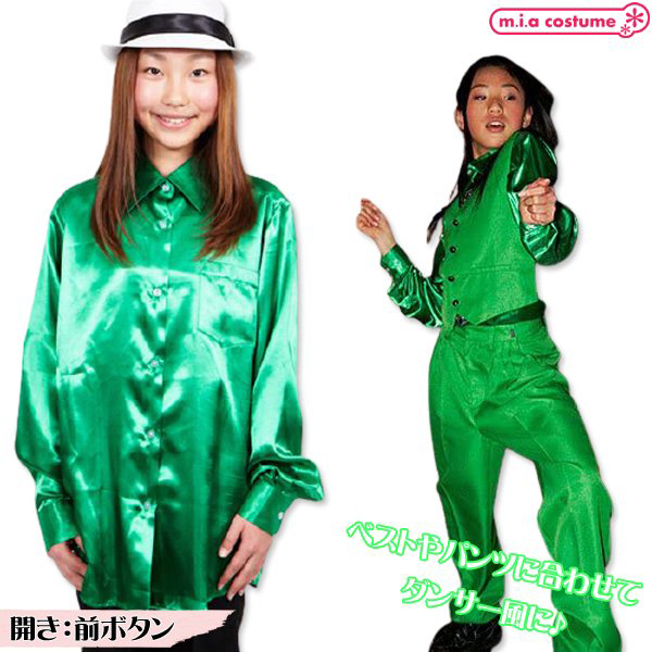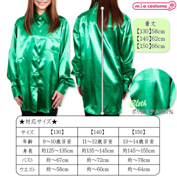 HOME > 衣装・コスチューム > 小物(猫耳カチューシャ・ニーソ) > サテンシャツ (グリーン 130サイズ)