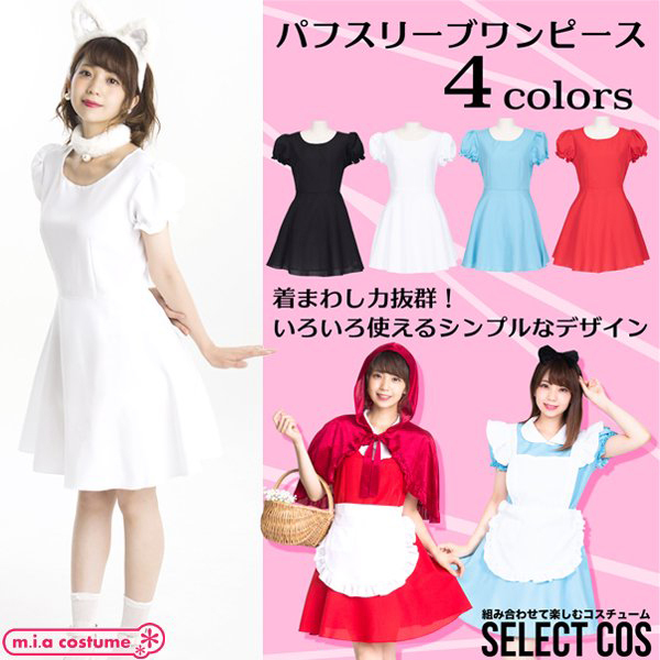 HOME > 衣装・コスチューム > 小物(猫耳カチューシャ・ニーソ) > セレクトコス パフスリーブワンピース ホワイト