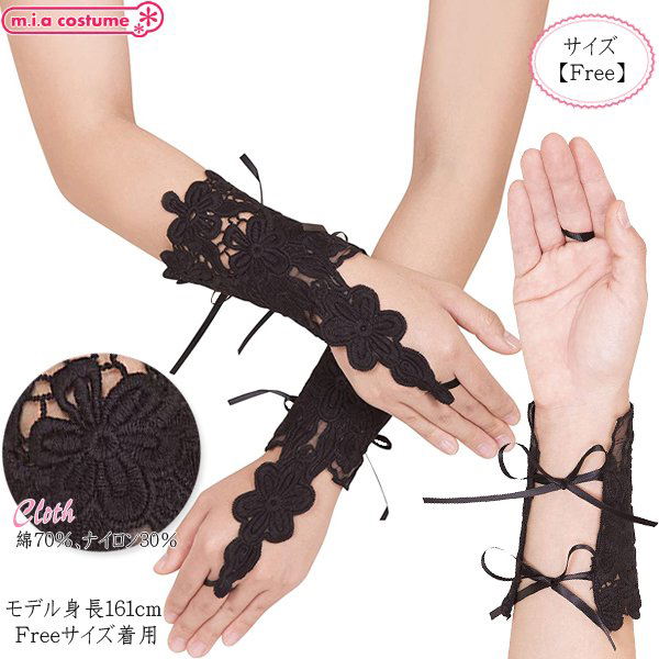 HOME > 衣装・コスチューム > 小物(猫耳カチューシャ・ニーソ) > レースグローブ Chloe ブラック