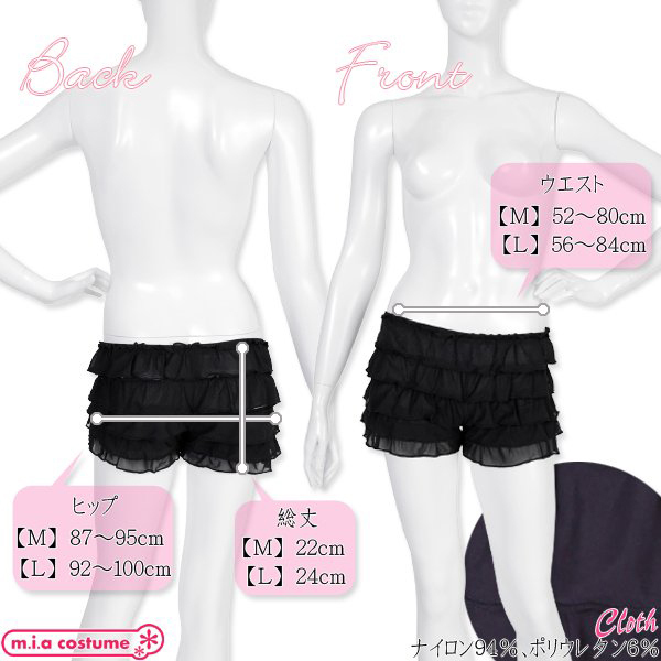HOME > 衣装・コスチューム > 小物(猫耳カチューシャ・ニーソ) > ペチコートパンツ ブラック L