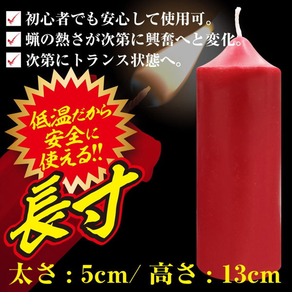 ロウの熱さが次第に興奮へ…!安全かつ本格的なSMプレイを楽しめる「低温ロウソク(長寸)」。 ●どっしり安定感のある太め蝋燭●高さ13cm、太さ5cmの長寸タイプ●低温でロウが溶ける安心仕様。 SM初心者さんでも安心♪ロウを溜めやすく垂らしやすい太めのSM蝋燭!初心者の方から上級者の方まで本格的なムードたっぷりのSMプレイをお楽しみいただけます。 緊縛事故防止の教育・啓発を行うNPO法人BDSMセーフティーサポート協会代表の女緊縛師「青山夏樹」推薦!安心・安全に使用できるSMグッズです。 【ご使用上の注意】落下させる環境や高さなどにより、体感温度は異なります。 火の取り扱いや火災・火傷には十分にご注意下さい。 炎を直接肌に触れさせないで下さい。 直射日光の当たらない涼しい場所で保管して下さい。