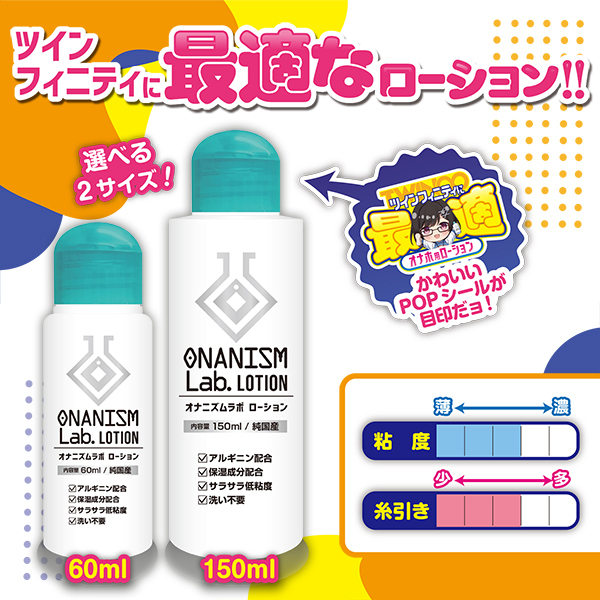 人気のオナホシリーズ『ツインフィニティシリーズ』に最適なオナホ用ローションが遂に出た!!オナホに最適な粘度感で、内部でよく馴染む。 アルギニン配合で、ベストな状態をキープしながらガチガチシコシコ♪サッとひと拭き洗い不要で楽チンチン。 純国産だから安心安全に使えちゃう。 もちろん、ツインフィニティ以外のオナホに使っても楽しめる!ひとつ上のオナニー体験がさらに加速する…オナニズムラボローションで新しい快感を手に入れよう♪150mlタイプはたっぷり使えるノーマルサイズ