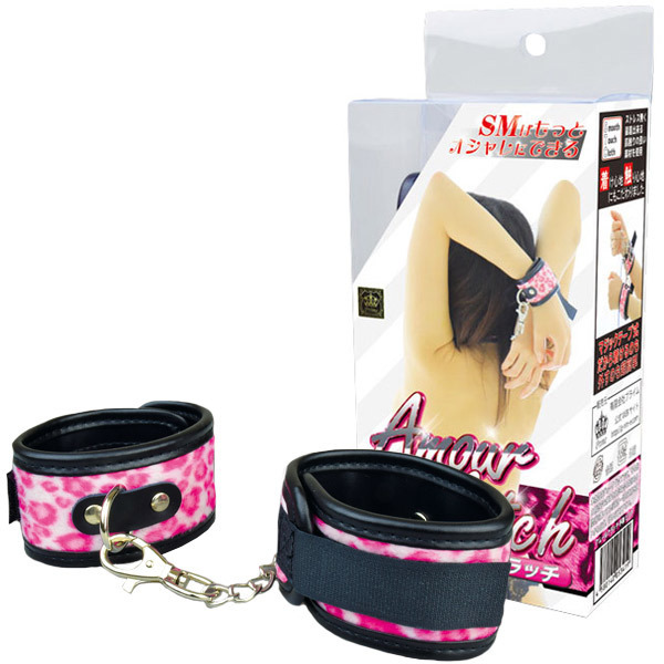 オシャレで可愛い♪ファッショナブルなSMグッズシリーズ「アムールクラッチ 手枷 豹ピンク」。 ●豹柄ピンクのチェーン手枷●肌触りの良いフワフワ素材●着脱簡単なマジックテープ式●チェーンは取り外し可能●お手軽にSMの雰囲気を演出。 オシャレなSMグッズでマンネリ解消!着け心地と触り心地にもこだわった「アムールクラッチ」シリーズのSMグッズ。 拘束プレイで本能が覚醒!いつもとは違う快感をパートナーとお楽しみ下さい。