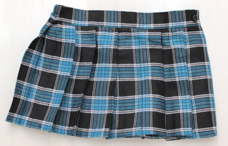 見せパンをはいて堂々と着こなしたい!びっくりするほど短い、セクシーな青いチェックスカート(M)。 爽やかな青チェック柄で、うっすらとラメの入ったキラキラ仕様。 学生の頃なら怒られそうな丈でも、コスチュームならアリ!ニーハイとの相性もバッチリな制服コスチュームです。