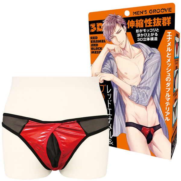 HOME > 下着 > 男性用ショーツ・ビキニ > レッドエナメル&ブラックメッシュ3Dショーツ