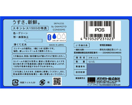 HOME > コンドーム・避妊具 > 薄い・厚い(早漏防止) > オカモト スキンレス1500