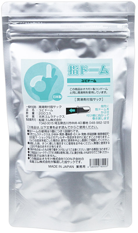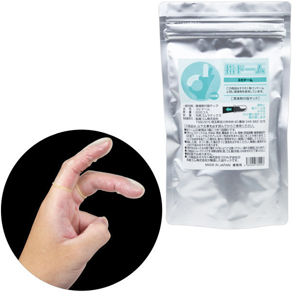 ヴァギナやアナルの愛撫に!薄くてフィット感に優れた指装着型コンドーム(200個入)。 ローションを塗布した使い捨てタイプ!指にはめることで爪に雑菌が入るのを防ぎ、傷つきやすい粘膜を保護できる日本製のフィンガーコンドームです。 ナチュラルカラーの天然ゴムラテックス製!厚みがないため、感触を損なうことなく衛生的なプレイができます。
