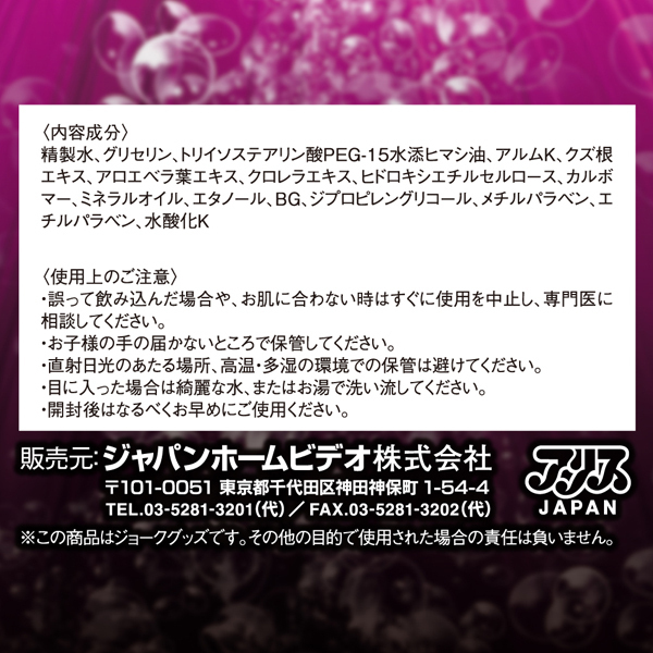 ぬれぬれ姫のクリームタイプが装いも新たに新登場!女性の潤いに必要なイソフラボン。 その成分エキスを配合した潤う体を満たすために欠かせないフィメール・クリームです。 ミョウバンを含む16種類の成分エキスを配合!ぜひ塗って敏感になっちゃってください♪尚、本作はジョークグッズとなっております。 その他の目的で使用された場合の責任は負いません。 よろしければストロングDのプッシュアップポンプ(v01693)やビンビン丸(v01698)、スリーマンスジェル(v01694)、GPROジェル(v01696)の商品もどうぞ!