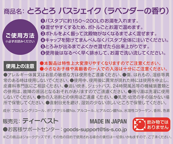 HOME > ソープグッズ・入浴剤 > 入浴剤(ローション・ゼリー・泡) > とろとろ バスシェイク (ラベンダーの香り)