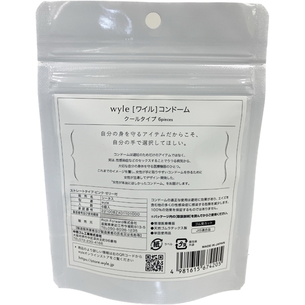 HOME > コンドーム・避妊具 > 温感・冷感(メントール) > wyle(ワイル)コンドーム (クールタイプ 6個入り)